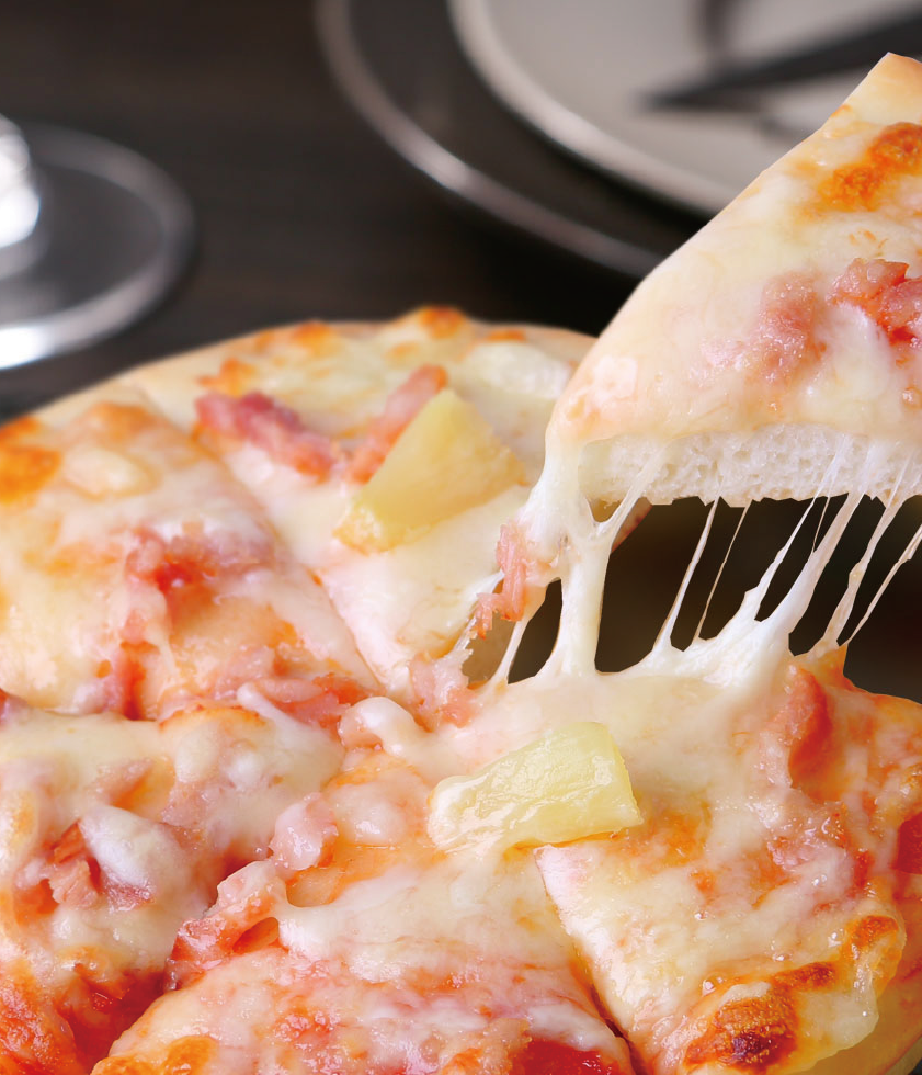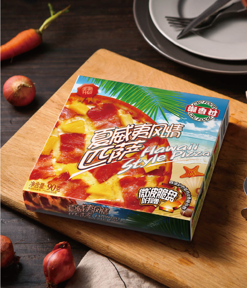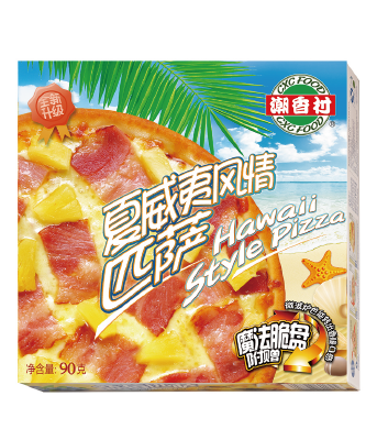 產(chǎn)品介紹:夏威夷風(fēng)情匹薩——酸酸甜甜、清爽可口的菠蘿,和熏制入味、肥瘦得當(dāng)?shù)呐喔?,在乳酪香濃的味道的襯托下,演繹出了這款經(jīng)典口味的匹薩。