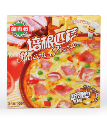 產(chǎn)品介紹:培根匹薩——選用肥瘦均衡的優(yōu)質培根肉入料,軟嫩多汁、色澤鮮明、香味四溢,佐以番茄醬和乳酪,加熱后從培根肉飄香與乳酪的奶香味混合在一起,別有一番風味。 工藝:半制成品 規(guī)格(g):188g 包裝規(guī)格:1片/盒 箱規(guī):30盒/箱